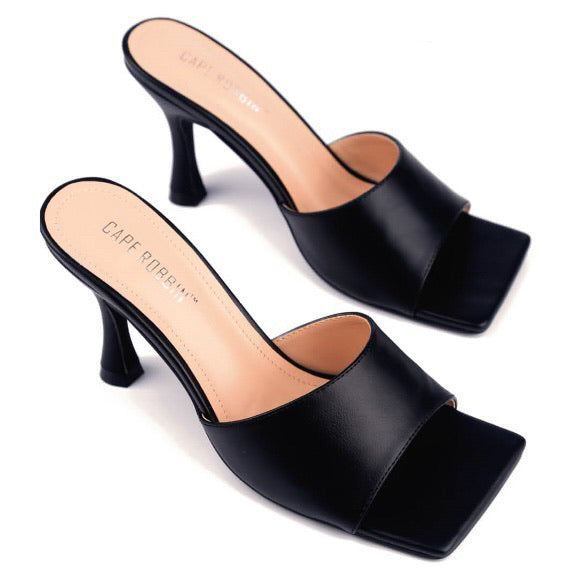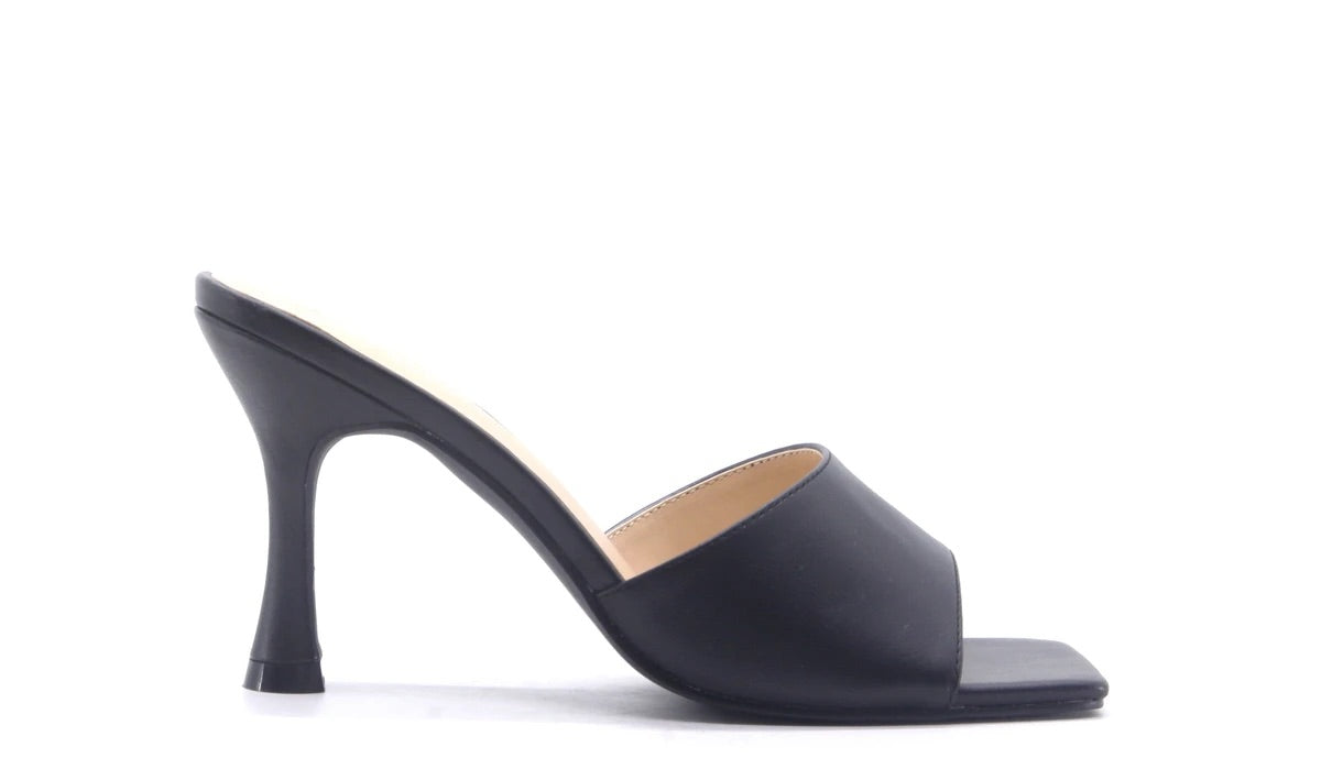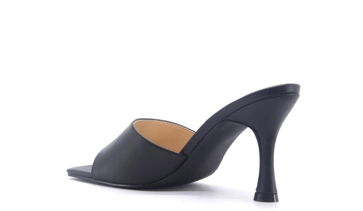 Vegan leather in black with square front design